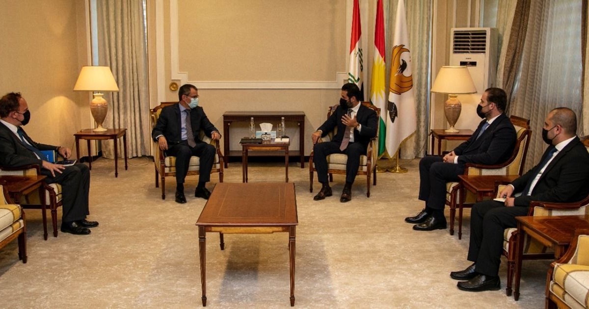 أربيل، إقليم كوردستان، العراق (GOV.KRD)- استقبل نائب رئيس الوزراء قوباد طالباني، اليوم الاربعاء ٢٦ أيار (مايو) ٢٠٢١، سفير الاتحاد الاوروبي لدى العراق فينسينت بوبيو ومسؤول مكتب بعثة الاتحاد في أربيل.