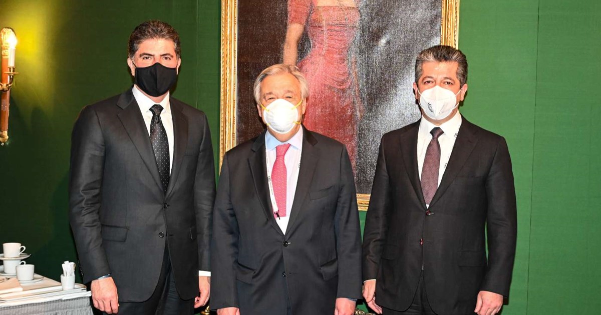 رئيس إقليم كوردستان ورئيس الحكومة يلتقيان الأمين العام للأمم المتحدة