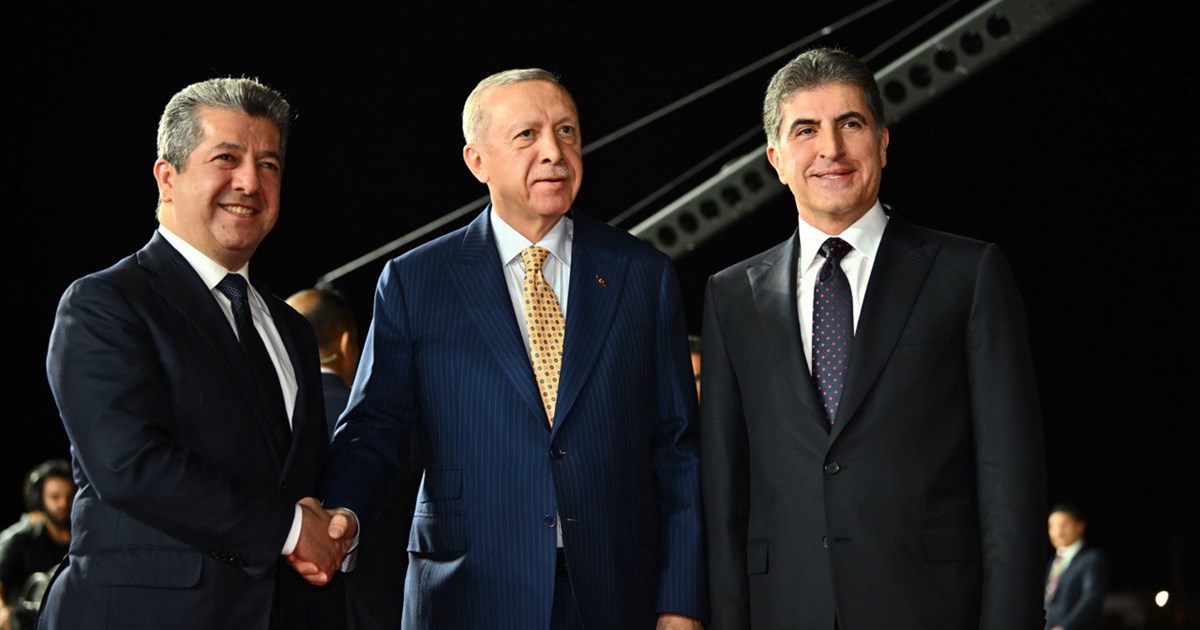 استقبل رئيس إقليم كوردستان نيجيرفان بارزاني، ورئيس الحكومة مسرور بارزاني في مطار أربيل الدولي، مساء اليوم الاثنين 22 نيسان (أبريل) 2024، رئيس الجمهورية التركية رجب طيب أردوغان والوفد المرافق له.وعقب انتهاء مراسم الاستقبال، عقد الجانبان اجتماعاً مشتركاً بحضور عدد من المسؤولين البارزين في الإقليم، جرى فيه بحث سبل تعزيز العلاقات الثنائية وآخر التطورات والمستجدات في العراق والمنطقة ...