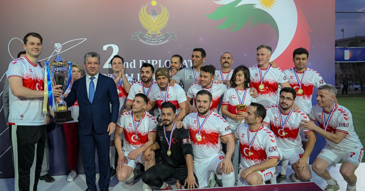 بحضور رئيس الحكومة.. اختتام المباراة النهائية للبطولة الدبلوماسية لكرة القدم في إقليم كوردستان