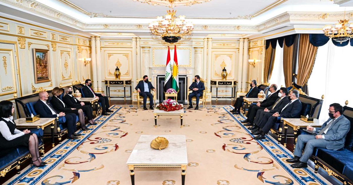 اربيل ، اقليم كوردستان، العراق (GOV.KRD)- استقبل رئيس حكومة إقليم كوردستان مسرور بارزاني، اليوم الأحد 27 شباط (فبراير) 2022، الأمين العام لحركة بابليون ريان الكلداني ووفده المرافق الذي ضم رئيس وأعضاء كتلة بابليون النيابية.