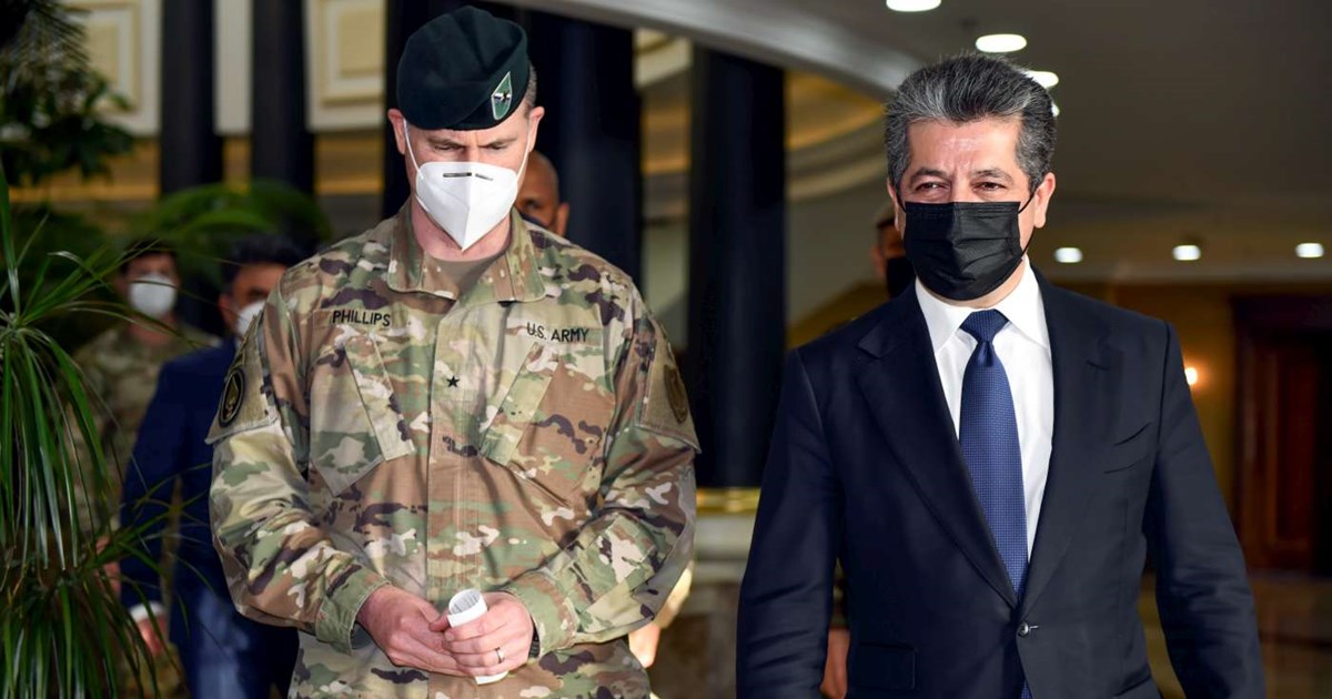 اربيل ، اقليم كوردستان، العراق (GOV.KRD)- استقبل رئيس حكومة إقليم كوردستان مسرور بارزاني، اليوم الاثنين 28 شباط (فبراير) 2022، وفداً عسكرياً أمريكياً برئاسة كبير المستشارين العسكريين والملحق العسكري في السفارة الأمريكية لدى العراق الجنرال كيث فيليبس.