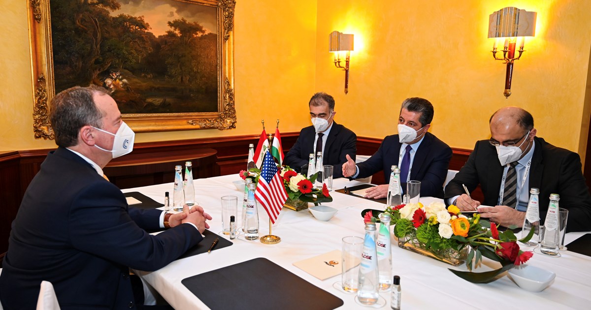 اربيل ، اقليم كوردستان، العراق (GOV.KRD)- التقى رئيس حكومة إقليم كوردستان مسرور بارزاني وعلى هامش أعمال اليوم الثاني لمؤتمر ميونيخ للأمن، اليوم السبت 19 شباط (فبراير) 2022، مع كل من النائبين في مجلس النواب الأمريكي إليسا سلوتكين وآدم شيف.