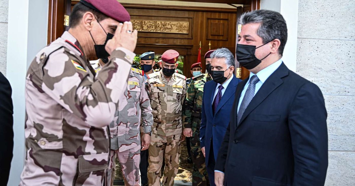 أربيل - إقليم کوردستان - العراق  (GOV.KRD)- استقبل رئيس حكومة إقليم كوردستان مسرور بارزاني، اليوم الأحد 19 حزيران (يونيو) 2022، وفداً عسكرياً وأمنياً عراقياً رفيع المستوى برئاسة رئيس أركان الجيش العراقي الفريق أول الركن عبد الأمير يار الله.