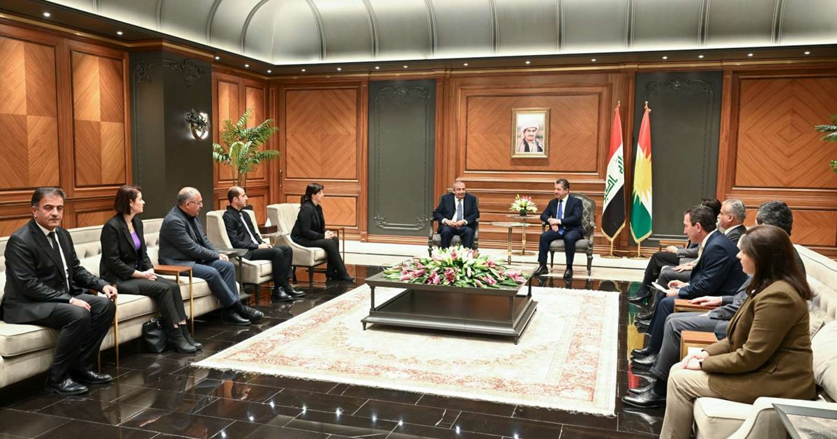 استقبل رئيس حكومة إقليم كوردستان مسرور بارزاني، اليوم الأربعاء، 19 شباط (فبراير) 2025، وفد إمرالي برئاسة النائبين عن حزب المساواة وديمقراطية الشعوب، سري سورييا أوندر، وبروين بولدان.