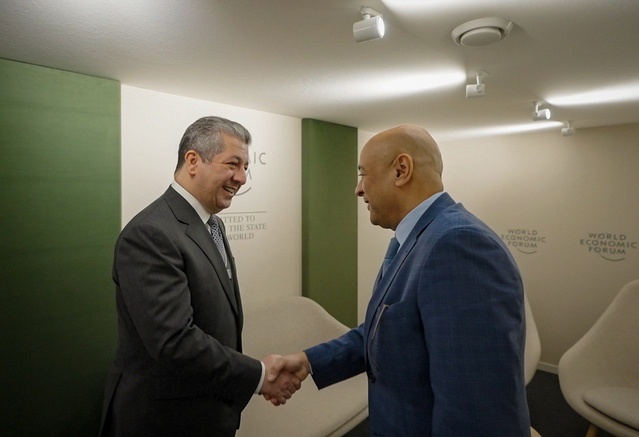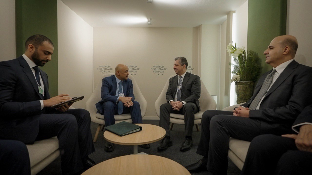 اجتمع رئيس حكومة إقليم كوردستان مسرور بارزاني، اليوم الثلاثاء 20 كانون الثاني (يناير) 2026 في دافوس، الأمين العام لمجلس التعاون لدول الخليج العربية جاسم محمد البديوي.