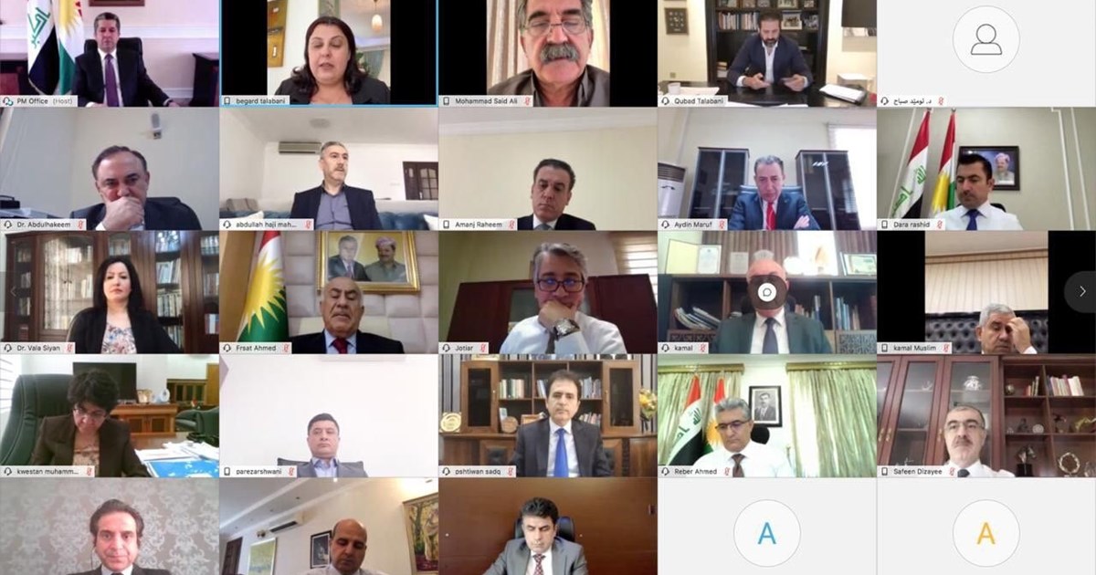 اربيل، اقليم كوردستان، العراق (GOV.KRD)- عقد مجلس وزراء إقليم كوردستان برئاسة رئيس مجلس الوزراء مسرور بارزاني، اليوم الأحد ٢١ حزيران (يونيو) ٢٠٢٠، جلسة خاصة عبر نظام مؤتمرات الفيديو (الفيديو كونفرانس) بمشاركة نائب رئيس مجلس الوزراء قوباد طالباني.