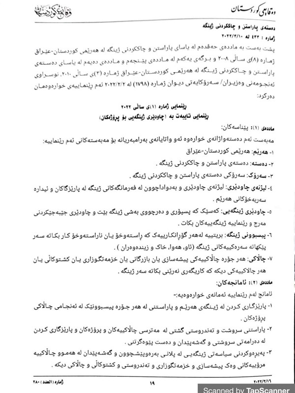 لە رێنمایی ژمارە (١)ی ساڵی ٢٠٢٢ تایبەت بە چاودێری ژینگەیی بۆ پڕۆژەكان، كە لە لەلاپەڕەكانی (١٩-٢٠-٢١)ی ژمارە (٢٨٠) رۆژنامەی وەقایعی كوردستان بڵاوكراوەتەوە، یەكێك لە ئامانجەكانی ئەو رێنماییە دۆزینەوەی هەلی كارە بۆ ئە و قوتابیانی دەرچووی بەشی ژینگەن.