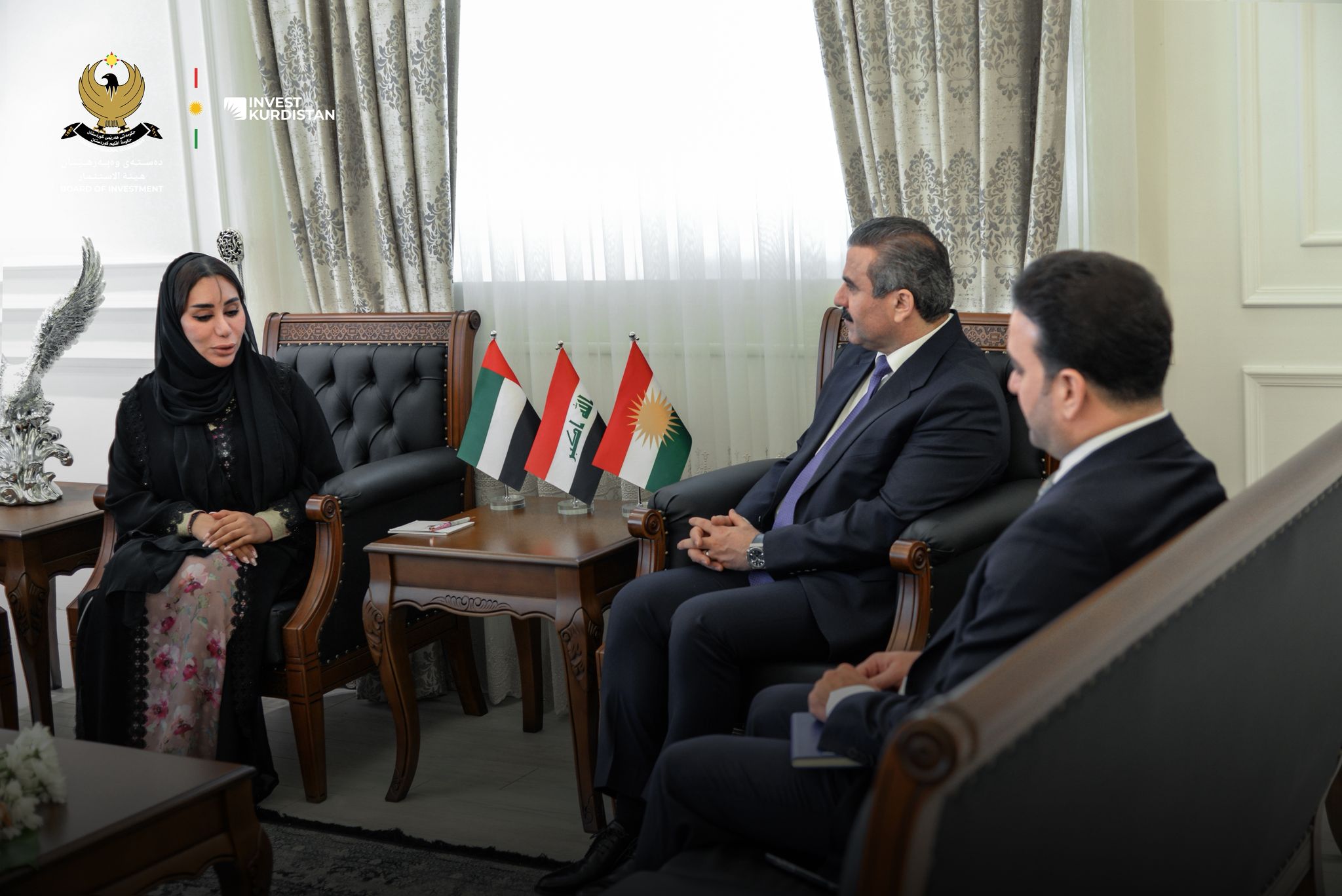 وفي هذا السياق، التقى رئيس هيئة الإستثمار في الإقليم، الدكتور محمد شكري، القائم بأعمال القنصل العام الإماراتي في الإقليم، السيدة شيخة بشير فرحان.