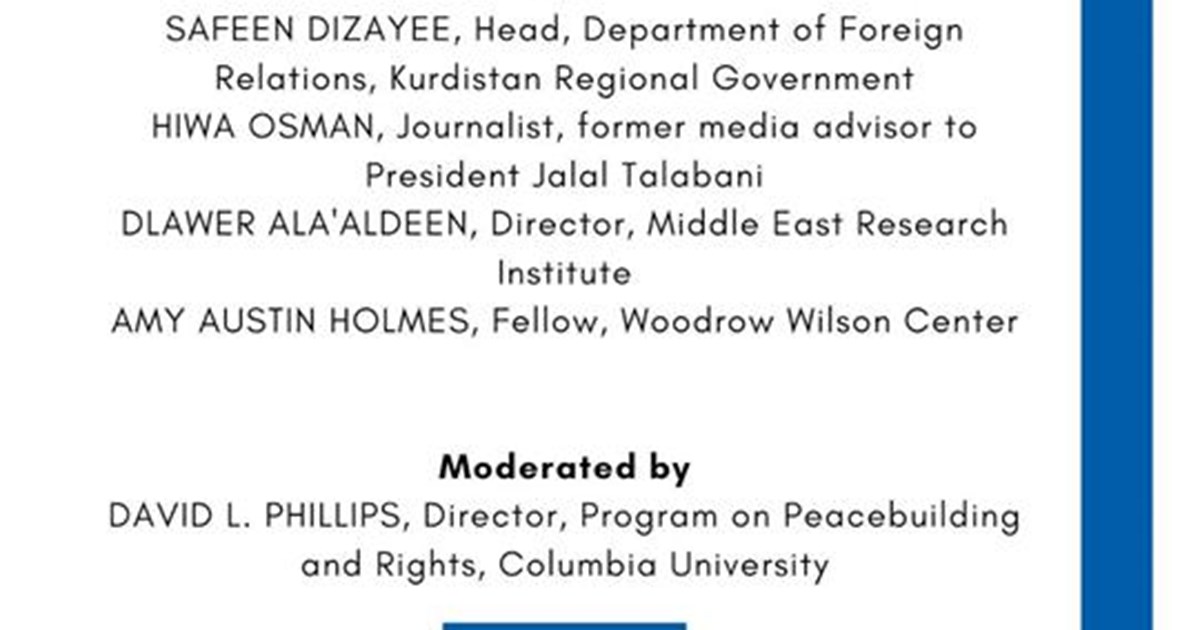 Minister Safeen Dizayee, Head of the Department of Foreign Relations (DFR) of the Kurdistan Regional Government (KRG) spoke on Friday, July 17 in a virtual panel discussion titled The Impact of Deadly Conflict on Kurds in Syria and Iraq.