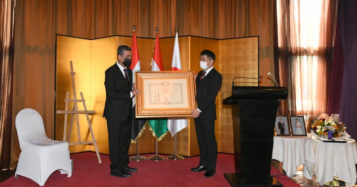 ڕۆژی پێنج شەممە ٢٠٢١/٣/١٨ لە مەڕاسیمێکدا لە هەولێر بە ئامادەبوونی سەفین دزەیی بەرپرسی پەیوەندییەکانی دەرەوەی حکومەت و سۆزۆکی کۆتارۆ باڵیۆزی ژاپۆن لە عیراق و بەرسانی حکومەت خەڵاتی ئیمپڕاتۆری ژاپۆن (ملوانکەی زێڕین هەڵاتنی خۆر) پێشکەش بە خدر کەریم جێگری سەرۆک شارەوانییەکان بۆ ئاشتی و سەرۆکی پێشووی شارەوانی هەڵەبجە کرا.