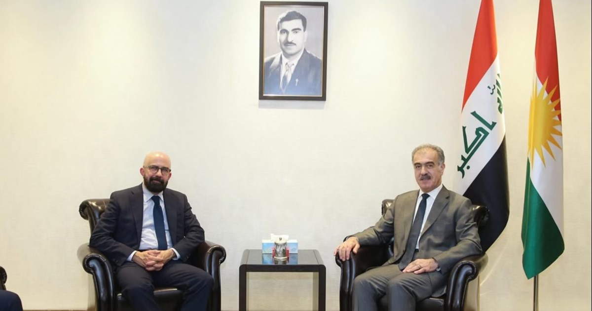 ڕۆژی چوارشەممە، ۲ی تەمموزی ۲٠۲٥، سەفین موحسین دزەیی، بەرپرسی پەیوەندییەکانی دەرەوەی حکومەت پێشوازی لە ئانو سارێلا، باڵیۆزی فینلەندا لە عێراق کرد