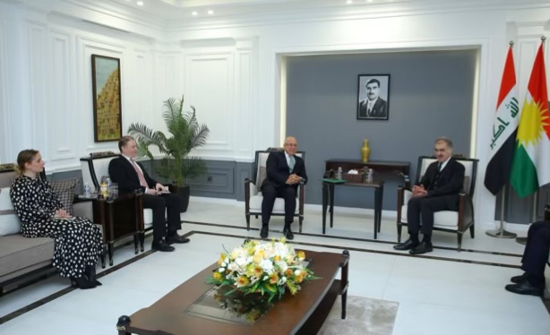 ڕۆژى یەکشەممە، ١٥ی شوباتی ٢٠٢٦، سەفین موحسین دزەیی، بەرپرسی فەرمانگەى پەیوەندییەکانى دەرەوە، پێشوازى لە ئوسامە ئیبراهیم نەفاع، باڵیۆزى هەنگاریا لە عێراق و تیڤادار گێرگێى تاکاچ، کونسولى گشتیى ئەو وڵاتە لە هەرێمى کوردستان کرد.