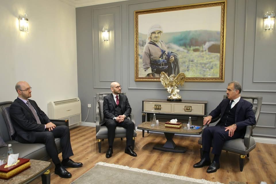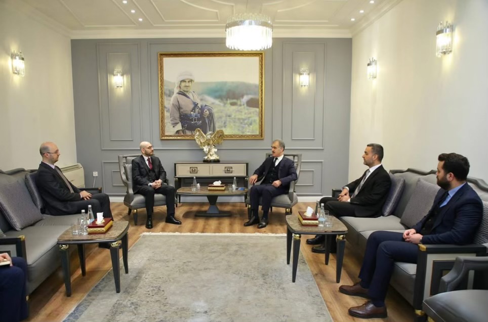 ڕۆژی پێنجشەممە، ١٢ی شوباتی ٢٠٢٦، سەفین موحسین دزەیی، بەرپرسی فەرمانگەی پەیوەندییەکانی دەرەوە، پێشوازی لە ڕۆبین سۆگۆیان باڵیۆزی ئەرمینیا لە عێراق، رافایل مۆڤسیسیان کاربەڕێکەری کونسوڵگەریی گشتیی ئەرمینیا لە هەرێم کرد.