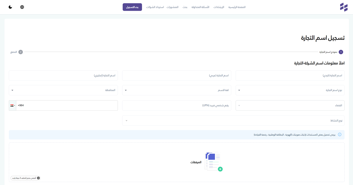 يمكنكم زيارة البوابة الجديدة لتسجيل الشركات والكيانات التجارية عبر نظام التسجيل للشركات والكيانات التجارية (business.digital.gov.krd)