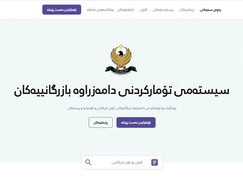 سەردانی پۆرتاڵی نوێی تۆمارکردنی دامەزراوە بازرگانییەکان بکە لە ڕێگەی سیستەمی تۆمارکردنی دامەزراوە بازرگانییەکان (business.digital.gov.krd)