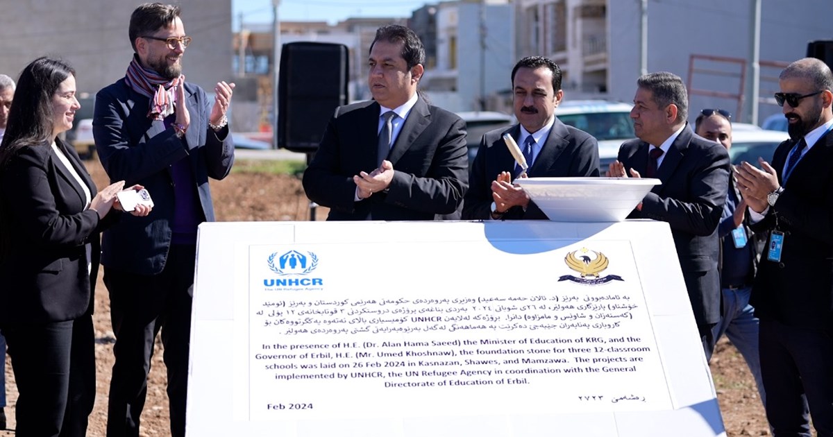 بە چاودێریی ئالان حەمەسەعید، وەزیری پەروەردەی حکومەتی هەرێمی کوردستان و ئامادەبوونی ئومێد خۆشناو، پارێزگاری هەولێر و نوێنەری ڕێکخراوی UNHCR، بەردی بناغەی پرۆژەی دروستکردنی سێ قوتابخانەی 12 پۆلی، لە کەسنەزان و شاوێس و مامزاوە لە سنووری پارێزگهى هەولێر دانران.