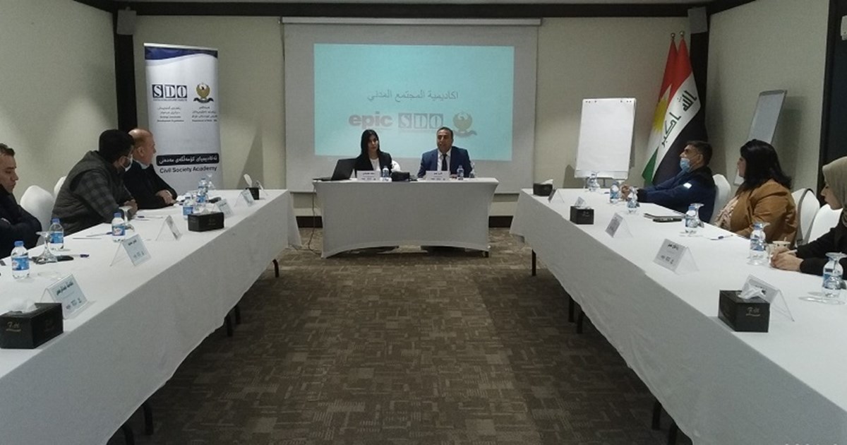 هەولێر، هەرێمی کوردستان، عێراق (GOV.KRD)- ئەمڕۆ دووشەممە 08/02/2021 پڕۆژەى ئەکادیمیاى کۆمەڵگەى مەدەنى بەڕێوەچوو کە پڕۆژەیەکى هاوبەشى نێوان فەرمانگەى رێکخراوە ناحکومییەکان و رێکخراوى گەشەپێدانى ستراتیژى بەردەوام و epic دەستەبەرکردنى ئاشتى ناوەندى عێراق، تێیدا ڕاهێنان بە کۆمەڵێک چالاکوانى کۆمەڵى مەدەنى کرا.