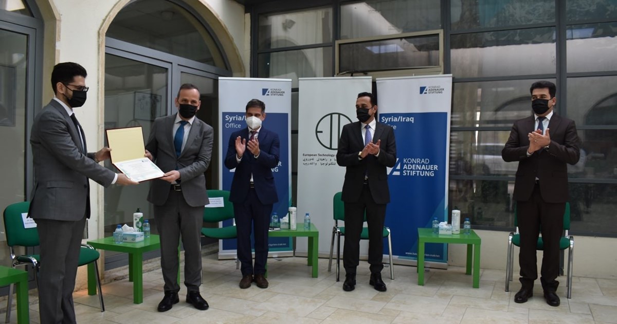 هەولێر، هەرێمی کوردستان، عێراق (GOV.KRD)- ڕۆژی سێشەممە ٢٠٢١/٣/١٦ لە بارەگاى سەنتەری تەکنەلۆجیاو و راهێنانی ئەوروپی (ETTC) مەراسیمى کۆتاییهێنان بە خولێکى تایبەت بە (پرۆتۆکۆل، ئەتەکێت، زمانی جەستە) بەڕێوەچوو، کە خولەکە بۆ ژمارەیەک لە فەرمانبەرانى پلەباڵاى میری رێکخرابوو. مەراسیمەکە بە بەشدارى پارێزگاری هەولێر ئومێد خۆشناو و بارزان ئەکرەم مەنتک، سەرۆکى فەرمانگەى رێکخراوە ناحکومییەکان بەڕێوەچوو، کە تێیدا وتەیەکى پێشکەش کرد و تیشکى خستەسەر گرنگى کارى رێکخراوەیى لە کوردستان و ڕۆڵ و کاریگەرى رێکخراوەکان لە پرۆسە جیاوازەکانى حوکمڕانى و کارى مەدەنى، ئاماژەی بەوەش كرد، ئەو چالاکییانەى کە (ETTC) لە کوردستان ئەنجامى دەدات جێگەى دەستخۆشى و پێزانینە. لە بەشێکیترى وتەکەیدا سەرۆکى فەرمانگە ڕایگەیاند، کە فەرمانگەى رێکخراوە ناحکومییەکان بە گرنگییەوە دەڕوانێتە ئەو چالاکییە مەدەنییانەى کە یەکدەگرنەوە لەگەڵ ئامانجەکانى حکومەت و بەرنامەى کارى ئەم کابینەیە، کە خۆیان دەبیننەوە لە بەرەنگاربوونەوەى ڕۆتین لە دامودەزگاکانی حکومەت و بەئەلیکترۆنیکردنی خزمەتگوزارییەکان و ڕێگریکردن لە گەندەڵی و بەهەدەردانی سامانی گشتی و ڕەخساندنی هەلی کار.