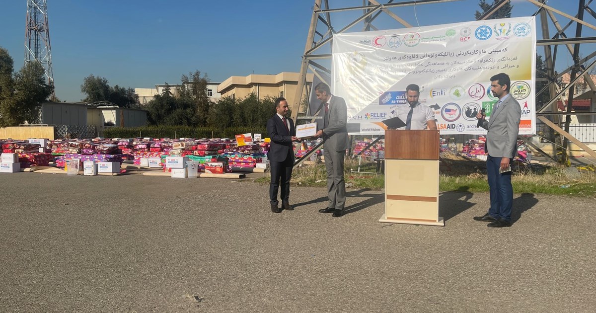 ڕۆژی دووشەممەش لە مەراسیمێکی شایستەدا ئەو کۆمەک و هاوکارییانە بە سەر ١٧٤ خێزانی زیانلێکەوتوو دابەش کران.