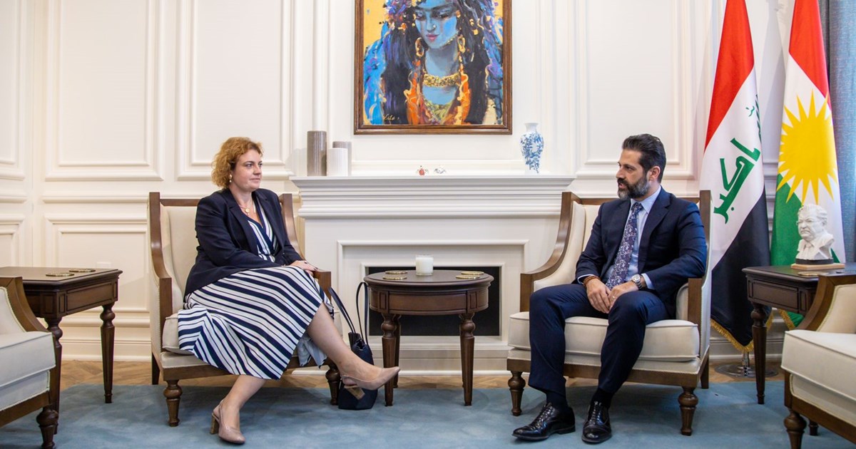 Erbil, Kurdistan Region, Iraq (GOV.KRD) – Deputy Prime Minister Qubad Talabani today met with Marie Paret, the new Head of EU Liaison Office in the Kurdistan Region, to welcome her into her new role and explore areas of greater collaboration.