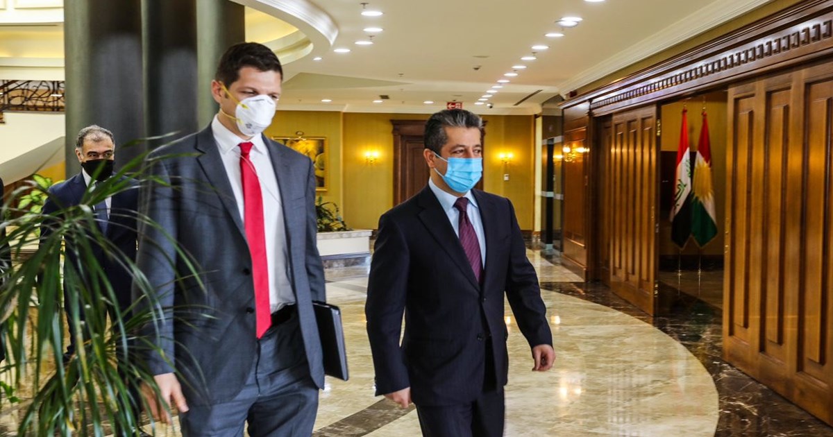 Erbil, Kurdistan Region, Iraq (GOV.KRD) - Prime Minister Masrour Barzani on Tuesday met with David Copley, the US State Department's Deputy Assistant Secretary for Iraq Affairs, to discuss the latest developments in the region.