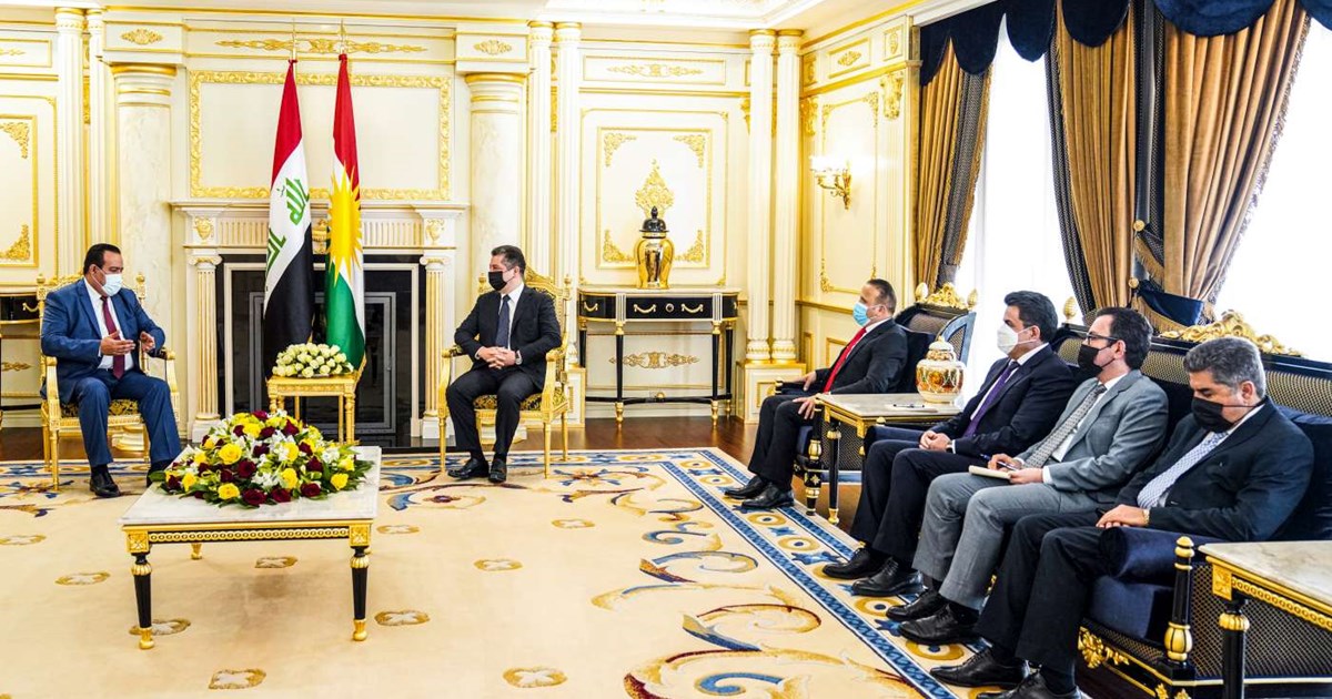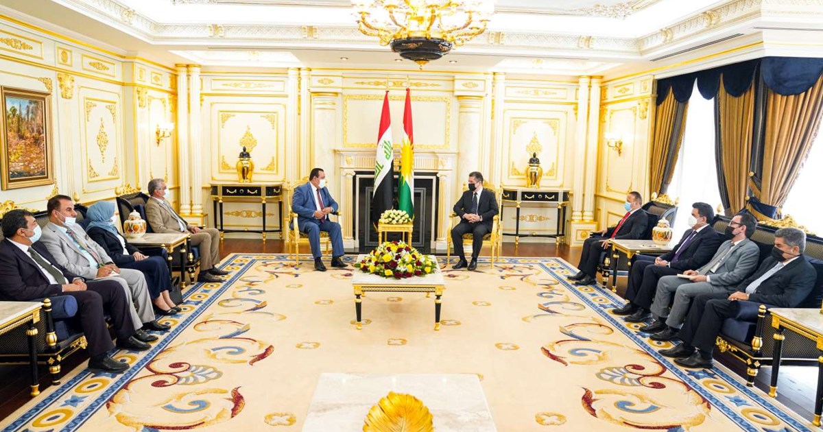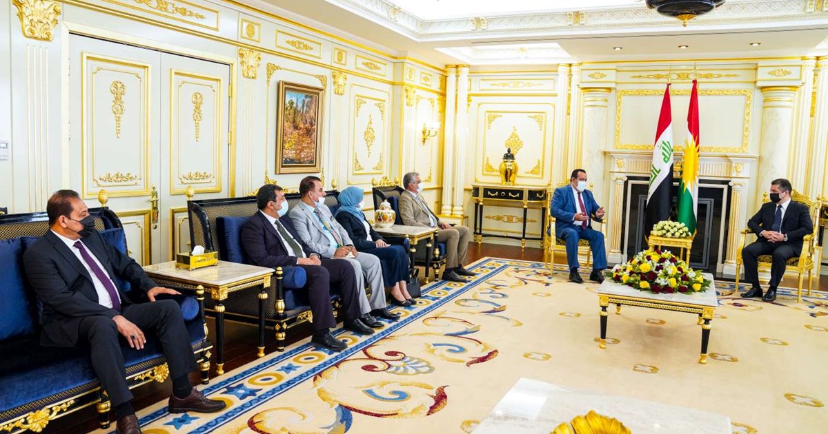 Erbil, Kurdistan Region, Iraq (GOV.KRD) – Prime Minister Masrour Barzani on Saturday met with a delegation from the Iraqi al-Umma party, led by Mahmood Hussein al-Agili.