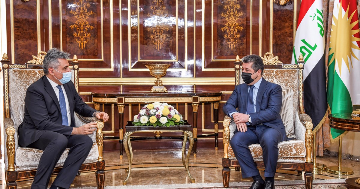 Erbil, Kurdistan Region, Iraq (GOV.KRD) - Prime Minister Masrour Barzani on Sunday met Bruno Antonio, the outgoing Italian ambassador to Iraq.