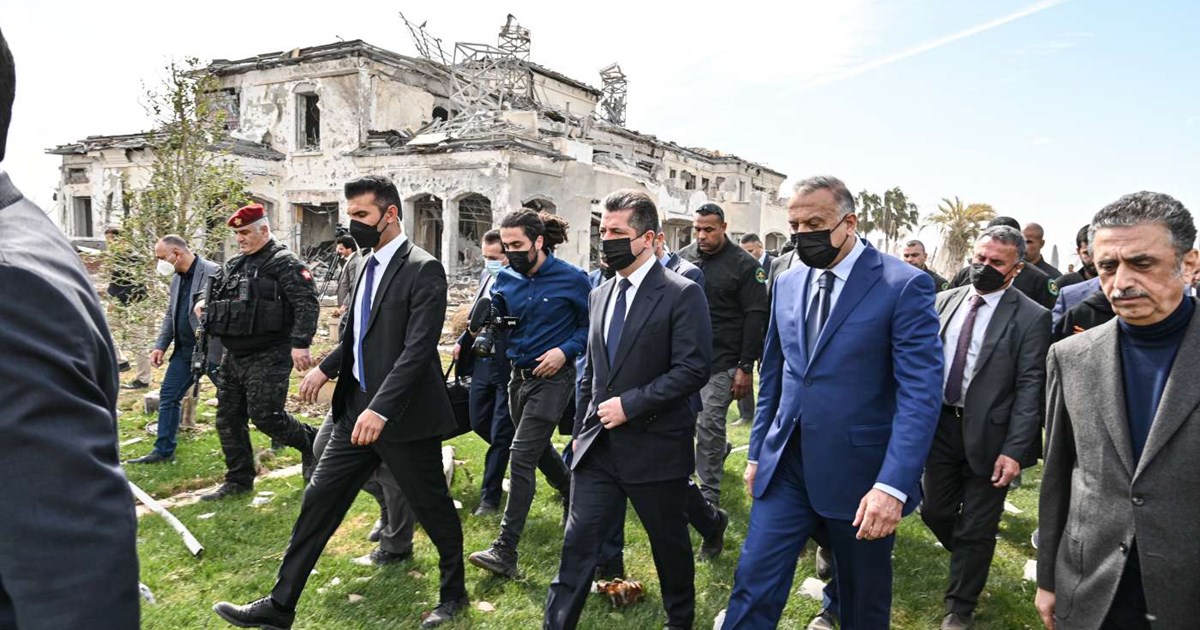 Erbil, Kurdistan Region, Iraq (GOV.KRD) - Prime Minister Masrour Barzani on Monday visited the areas affected by Sunday's missile attack on Erbil alongside Iraqi Prime Minister Mustafa al-Kadhimi.