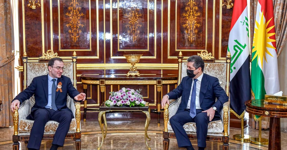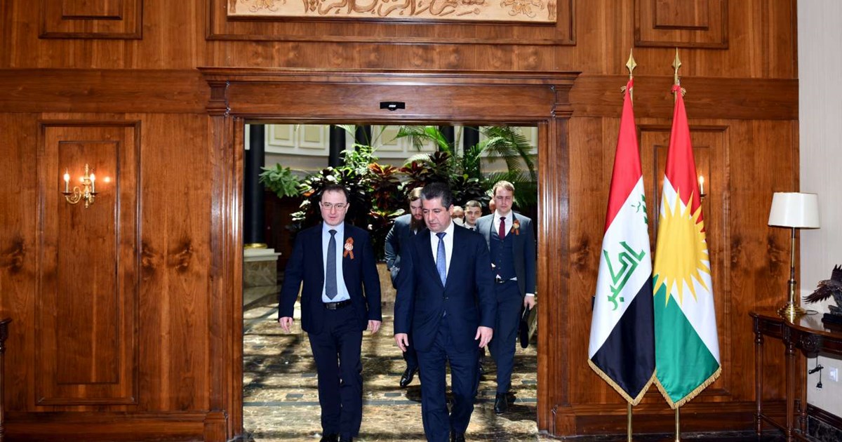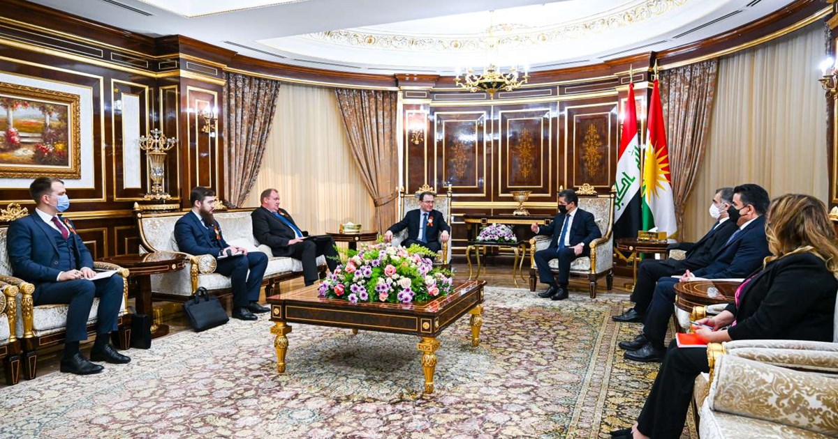 Erbil, Kurdistan Region, Iraq (GOV.KRD) - Prime Minister Masrour Barzani on Tuesday met Elbrus Kutrashev, the Russian Ambassador to Iraq.