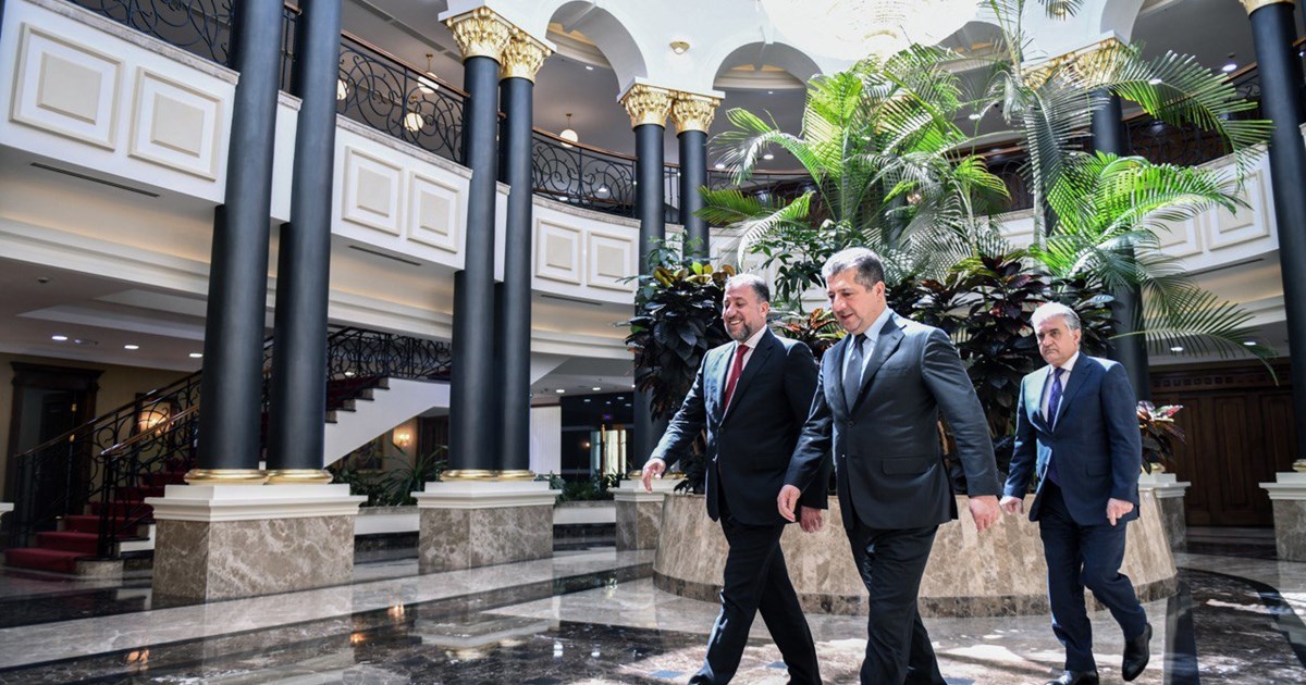 On Thursday, September 7, 2023, Kurdistan Regional Government Prime Minister Masrour Barzani warmly received Mr. Khamis al-Khanjar, the President of the Sovereignty Alliance.