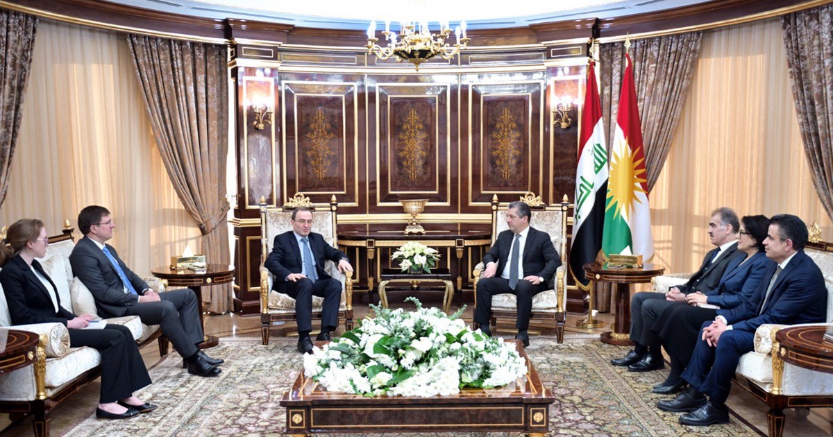 Erbil, Kurdistan Region (GOV.KRD) - Today, Prime Minister Masrour Barzani met with Elbrus Kutrashev, the Russian Ambassador to Iraq.