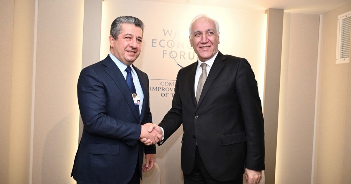 On Thursday, January 18, 2024, Masrour Barzani, Prime Minister of the Kurdistan Regional Government (KRG), held discussions with Vahagn Khachaturyan, President of Armenia, during the World Economic Forum in Davos.