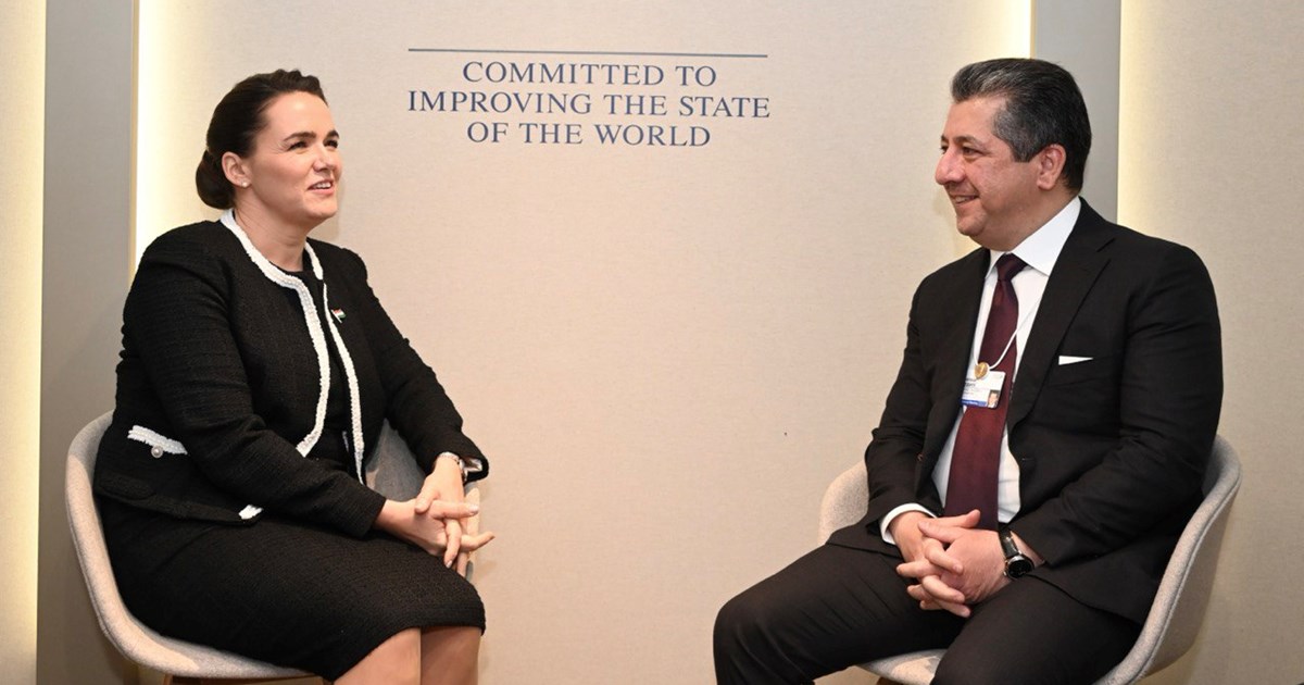 On Wednesday, January 17, 2024, Masrour Barzani, the Prime Minister of the Kurdistan Regional Government (KRG), held discussions with Katalin Novák, the President of Hungary, at the World Economic Forum in Davos.