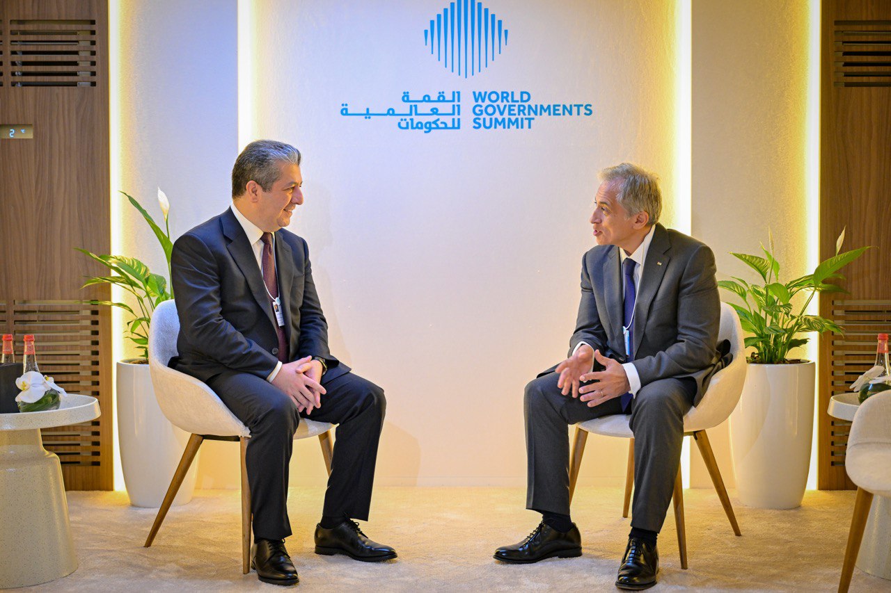 Erbil, Kurdistan Region (GOV.KRD) – On Tuesday, Prime Minister Masrour Barzani met with Jordanian Prime Minister Jafar Hassan on the sidelines of his participation in the World Governments Summit in Dubai
