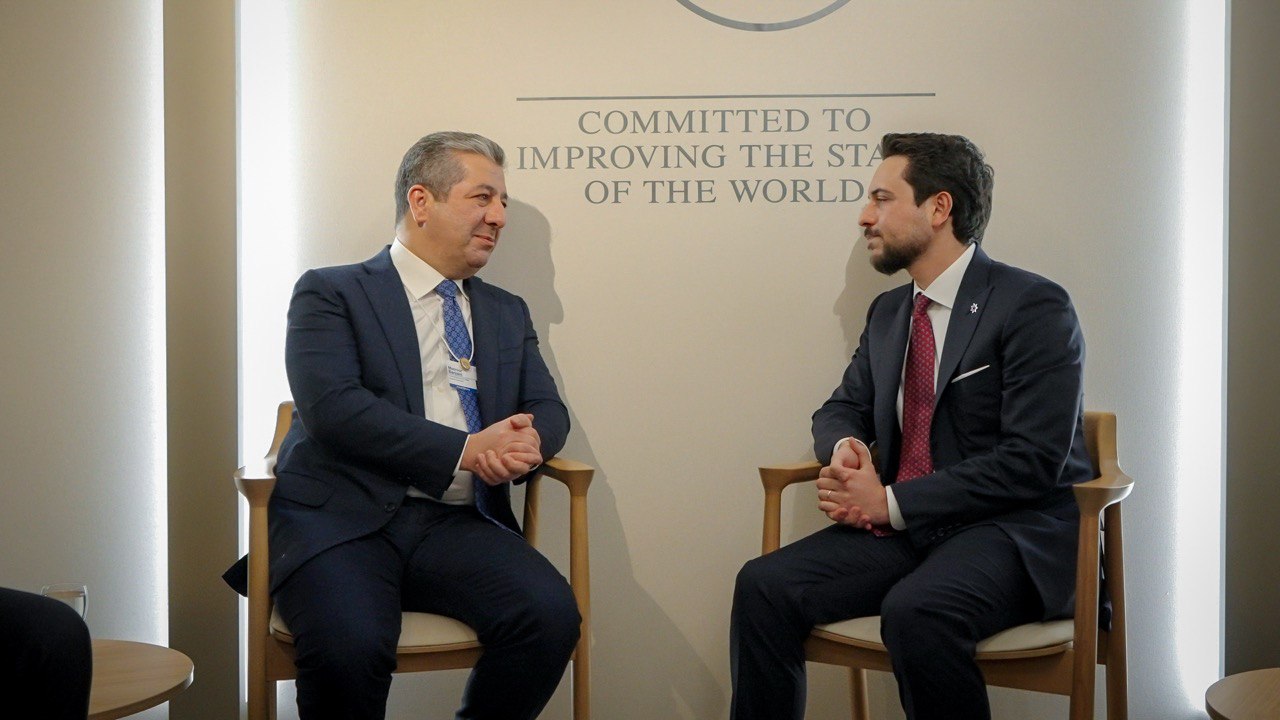 Erbil, Kurdistan Region (GOV.KRD) – Prime Minister Masrour Barzani on Thursday met with H.R.H. Crown Prince Al Hussein bin Abdullah II of the Hashemite Kingdom of Jordan, on the sidelines of the World Economic Forum in Davos.