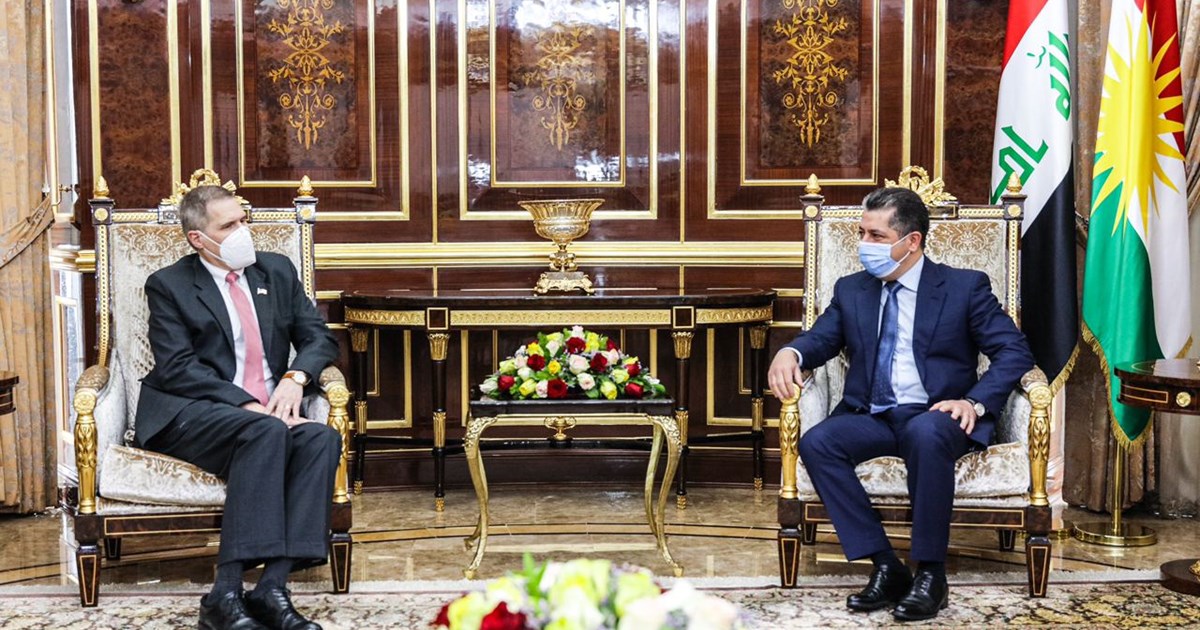 Prime Minister Masrour Barzani today met with the US Ambassador to Iraq, Matthew Tueller, accompanied by the US Consul General in Erbil, Rob Waller, to discuss the situation in Iraq and bilateral relations between the Kurdistan Region and the United States.