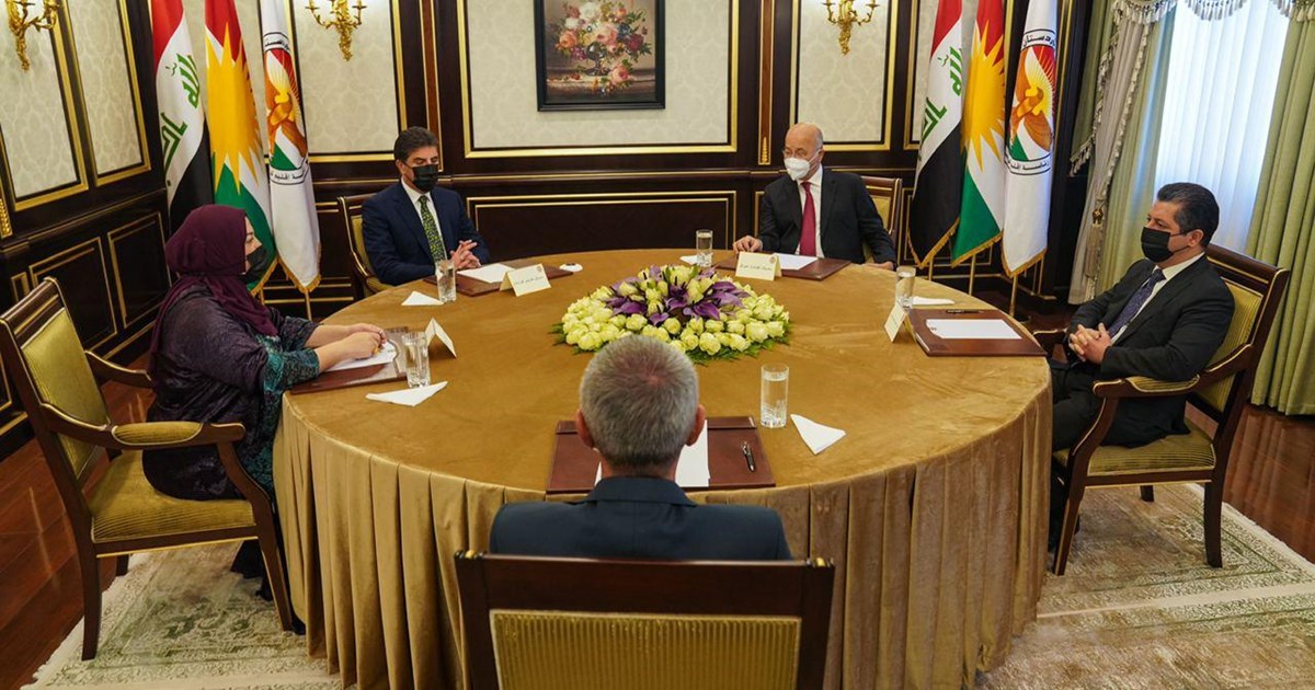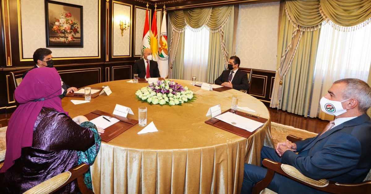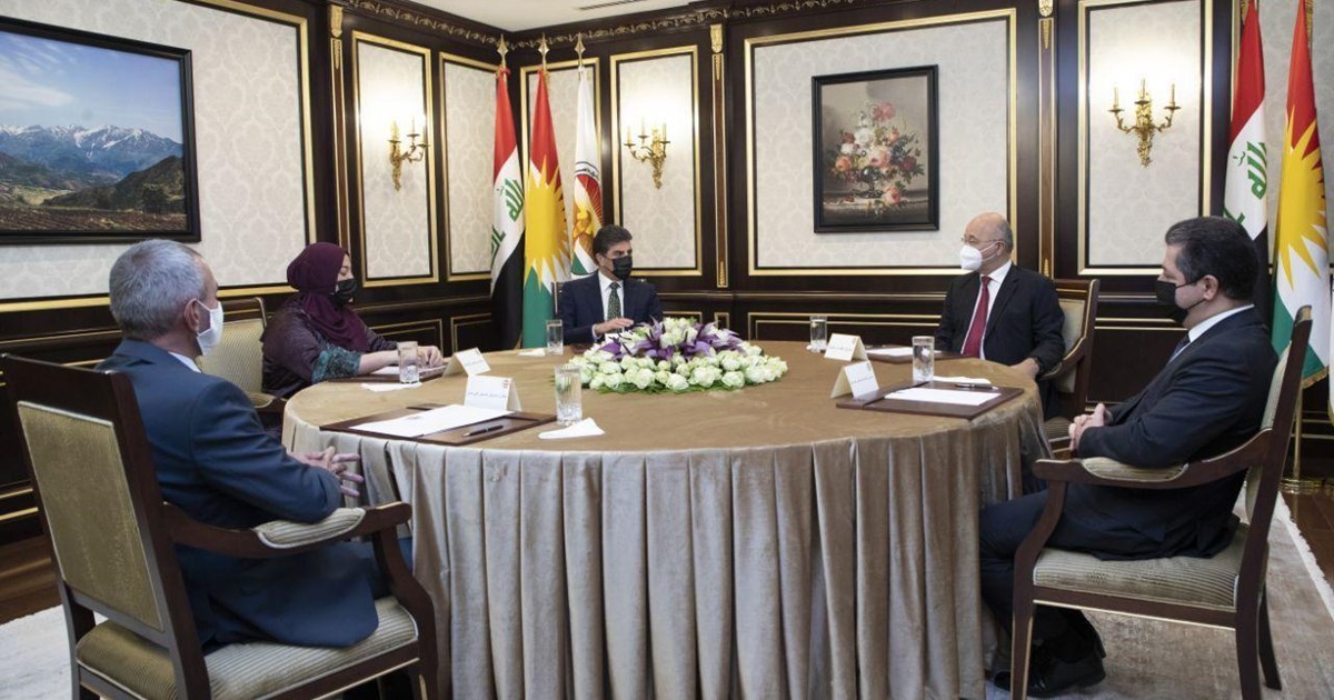 In the meeting, Iraq’s President Barham Salih, Kurdistan Region President Nechirvan Barzani, Vice President Mustafa Said Qadir, Kurdistan Region Parliament Speaker Rewaz Fayeq and Kurdistan Regional Government Prime Minister Masrour Barzani, reiterated their support for the recent agreement on the status of Shingal (Sinjar) between the Federal Government of Iraq and the Kurdistan Regional Government including the return of the internally displaced. They voiced their rejection to any effort aiming at changing the demography of the disputed territories and urged that the Federal Government of Iraq to provide mechanisms for upholding peace and security in these areas.