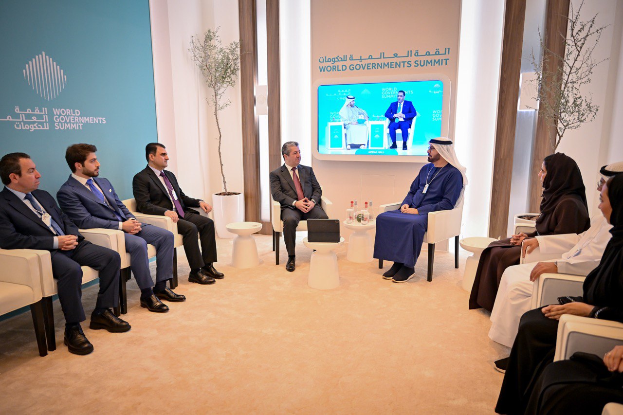سەرۆکی حکومەت لەگەڵ سەرۆکی لوتکەی جیهانیی حکومەتەکان و وەزیری کاروباری ئەنجومەنی وەزیرانی ئیمارات کۆبووەوە