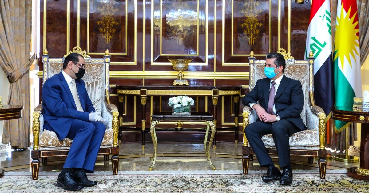 ئەمڕۆ پێنجشەممە ٢٠٢٠/٩/١٠ مەسرور بارزانی سەرۆک وەزیرانی هەرێمی کوردستان بە ئامادەبوونی قوباد تاڵەبانی جێگری سەرۆک وەزیران، پێشوازی لە مستەفا کازمی سەرۆک وەزیرانی عێراق و شاندێکی یاوەری کرد.