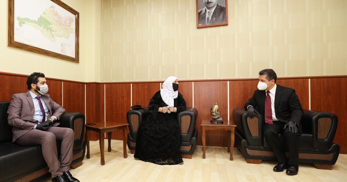ھەولێر، ھەرێمی كوردستان، عێراق (GOV.KRD)- ئەمڕۆ سێشەممە ٢٠٢٠/٧/٢١ مەسرور بارزانی سەرۆکی حکومەتی هەرێمی کوردستان، لە شاری زاخۆ پێشوازی لە خاتوو مریەم عەلی عوسمان کرد کە خێزانی شەهید ئەحمەد مەلا گولی و دایکی سێ شەهیدە بە ناوەکانی ( مراد ، سامی ، نەزیر ). هەروەها نەوەیەکیشی شەهیدە بە ناوی ( شەعبان خەلیل عەلی ).