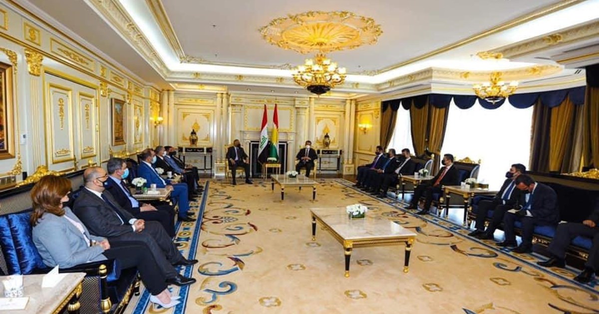 هەولێر، هەرێمی کوردستان، عێراق (GOV. KRD) -ئەمڕۆ پێنجشەممە ٢٠٢٠/٩/١٠ مەسرور بارزانی سەرۆک وەزیرانی هەرێمی کوردستان بە ئامادەبوونی قوباد تاڵەبانی جێگری سەرۆک وەزیران، پێشوازی لە مستەفا کازمی سەرۆک وەزیرانی عێراق و شاندێکی یاوەری کرد.