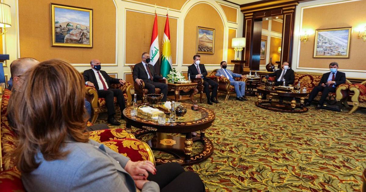 سەرۆک وەزیرانی هەرێمی کوردستان جەختیشی لەوە کردەوە کە هەرێمی کوردستان و عێراق بە گشتی ڕووبەڕووی چەندین ئاستەنگ و قەیرانی دارایی و دۆخی نالەباری تەندروستی بوونەتەوە، بۆیە ئامادەیی خۆمان بۆ چارەسەرکردنی سەرجەم کێشەکان دەردەبڕین بە شێوەیەک کە لە بەرژەوەندی هەموو هاووڵاتییانی عێراقدا بێت. سەرۆک وەزیرانی هەرێمی کوردستان جەختیشی لە گرنگیی چارەسەرکردنی کێشەکانی بودجە و نەوت و ناوچە کوردستانییەکانی دەوەی هەرێم و ماف و شایستە دەستوورییەکانی پێشمەرگە کردەوە. بەتایبەتی کاراکردنی میکانیزمی هەماهەنگی ئەمنیی هاوبەش لە نێوان هێزی پێشمەرگە و سوپای عێراق لە ناوچە کوردستانییەکانی دەرەوەی هەرێم بۆ ڕووبەڕووبوونەوەی هەڕەشەکانی تیرۆریستانی داعش.