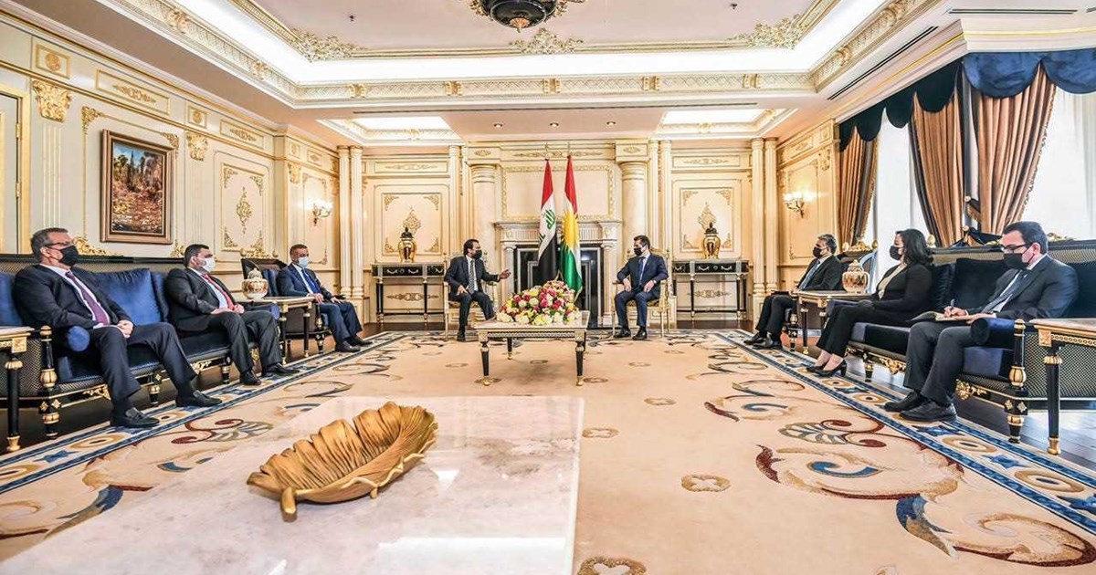 هەولێر ، هەرێمی كوردستان ، عیراق (GOV.KRD)- ئەمڕۆ دووشەممە 2021/5/3 مەسرور بارزانی سەرۆکی حکومەتی هەرێمی کوردستان، پێشوازی لە محەمەد حەلبوسی سەرۆکی ئەنجومەنی نوێنەرانی عێراق و سەرۆکی پارتی ( تقدم) و شاندێکی یاوەری کرد.