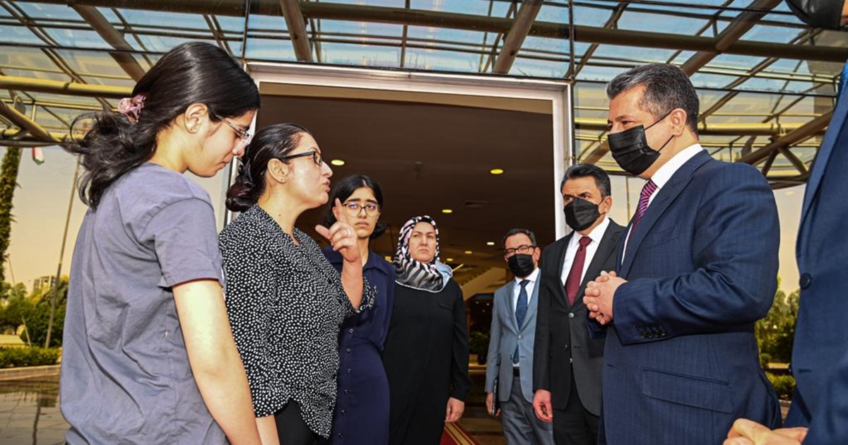 هەولێر، هەرێمی کوردستان، عێراق (GOV.KRD)- ئەمرۆ چوارشەممە 6 ی تەممووز، مەسرور بارزانی سەرۆکی حکومەتی هەرێمی کوردستان ، پێشوازی لە بنەماڵەی هەردوو شەهید د. کاوان ئیسماعیل و د. ئیدریس حەمەخان کرد کە حەفتەی ڕابردوو لە کردەوەیەکی تاوانکاریدا گیانیان لە دەستدا .