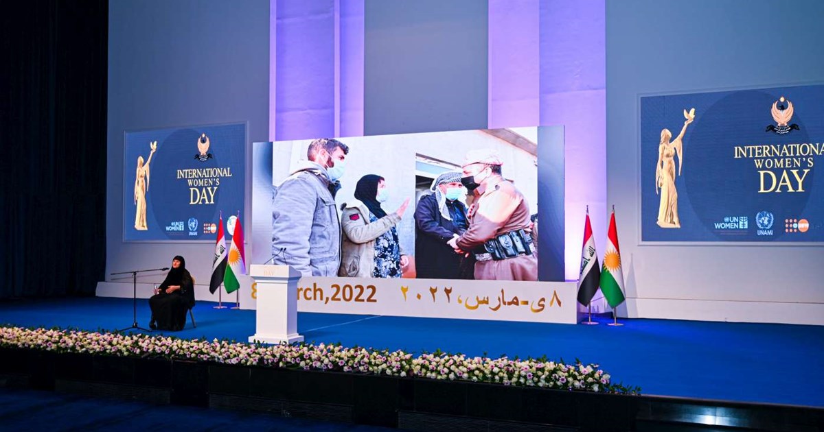 هەولێر، هەرێمی کوردستان، عێراق (GOV.KRD)- ئەمڕۆ سێشەممە 8ی ئاداری 2022 ، مه‌سرور بارزانی، سه‌رۆكی حكومه‌تی هه‌رێمی كوردستان، لە شاری هەولێر بەشداری له ڕێورەسمی یادی‌ رۆژی جیهانیی ئافره‌تان له‌ژێر ناوونیشانی (یەکسانی جێندەری ئەمڕۆ، بۆ داهاتوویەکی بەردەوام)کرد و لە گوتارێکدا ئاماژەی بەوە دا کە لە ڕاپەڕین و شۆڕشەکانی گەلی کوردستان، ئافرەتانی پێشمەرگە نموونەی ئازایەتیی و گیانفیدایی و قوربانیدان بوون و بوێری ئافرەتی کورد ، ناوی کوردستانی بەرزتر کرد.