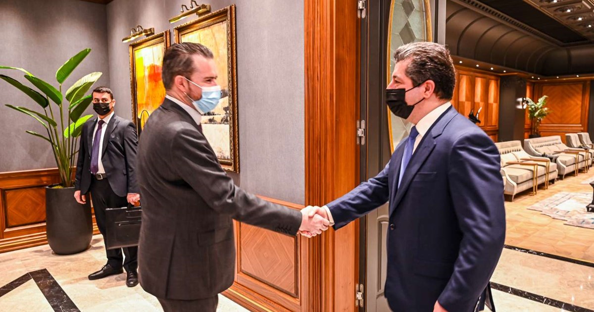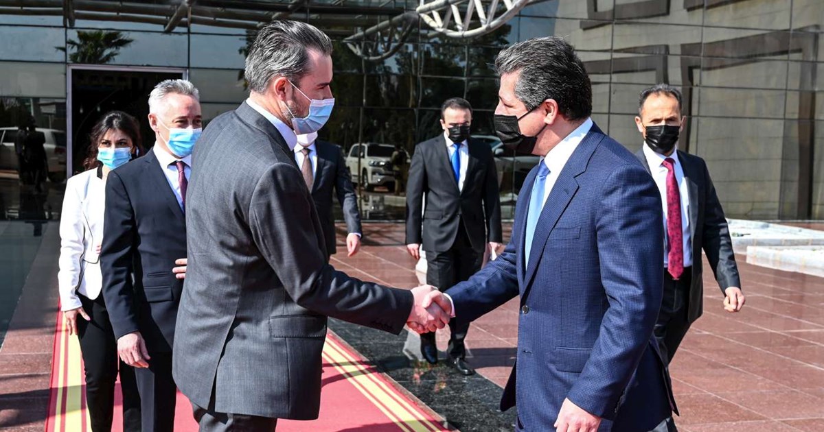 هەولێر، هەرێمی کوردستان، عێراق (GOV.KRD)- ئەمڕۆ سێشەممە 8ی ئاداری 2022، مەسرور بارزانی سەرۆکی حکومەتی هەرێمی کوردستان، پێشوازی لە گریگۆری گالیگان باڵیۆزی نوێی کەنەدا لە عێراق کرد.