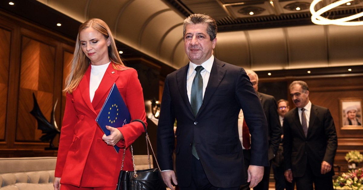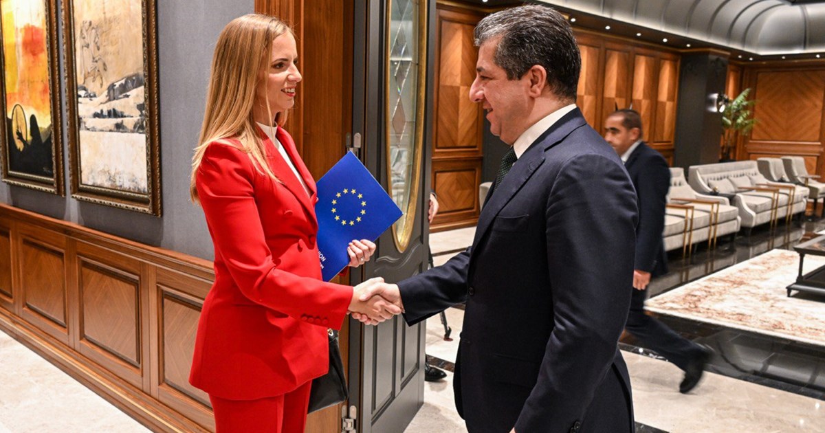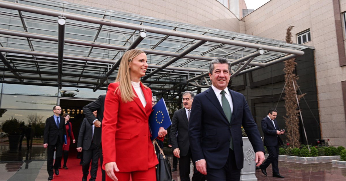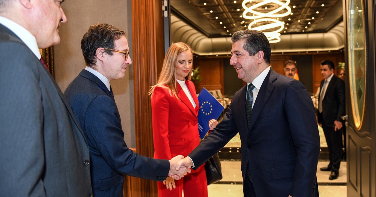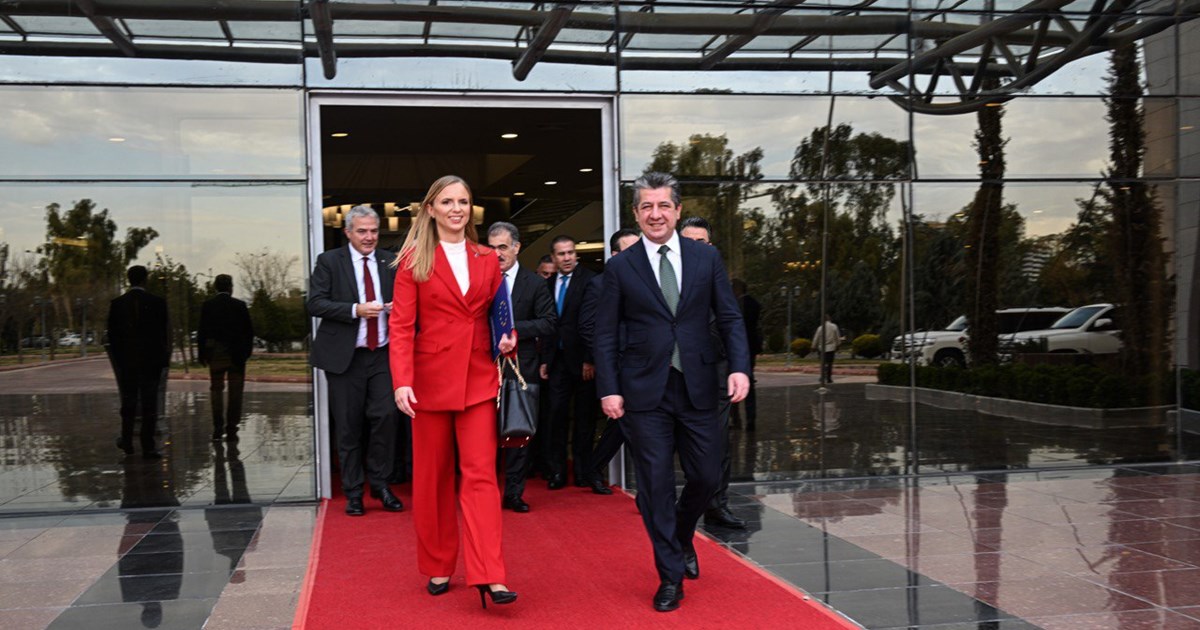 ئهمڕۆ چوارشهممه 3/8، مەسرور بارزانى، سهرۆكى حکومەتی ههرێمى كوردستان، پێشوازى له شاندێكى پهرلهمانتارانی يهكێتيى ئهوروپا به سهرۆكايهتيى سارا سكيتێدال سەرۆکی لیژنەی پەیوەندییەکان لەگەڵ عێراق كرد.