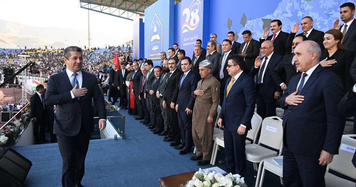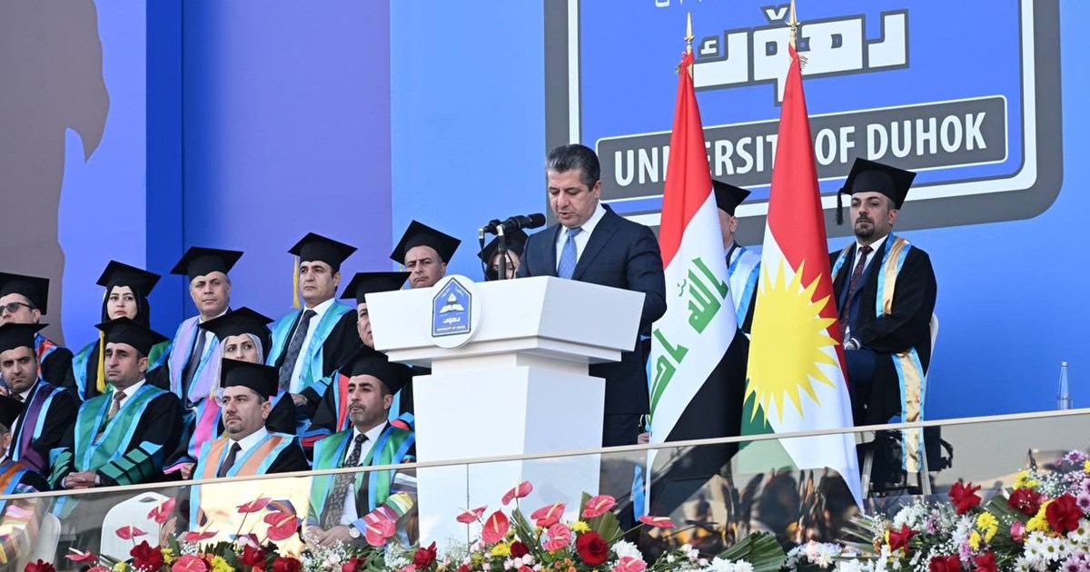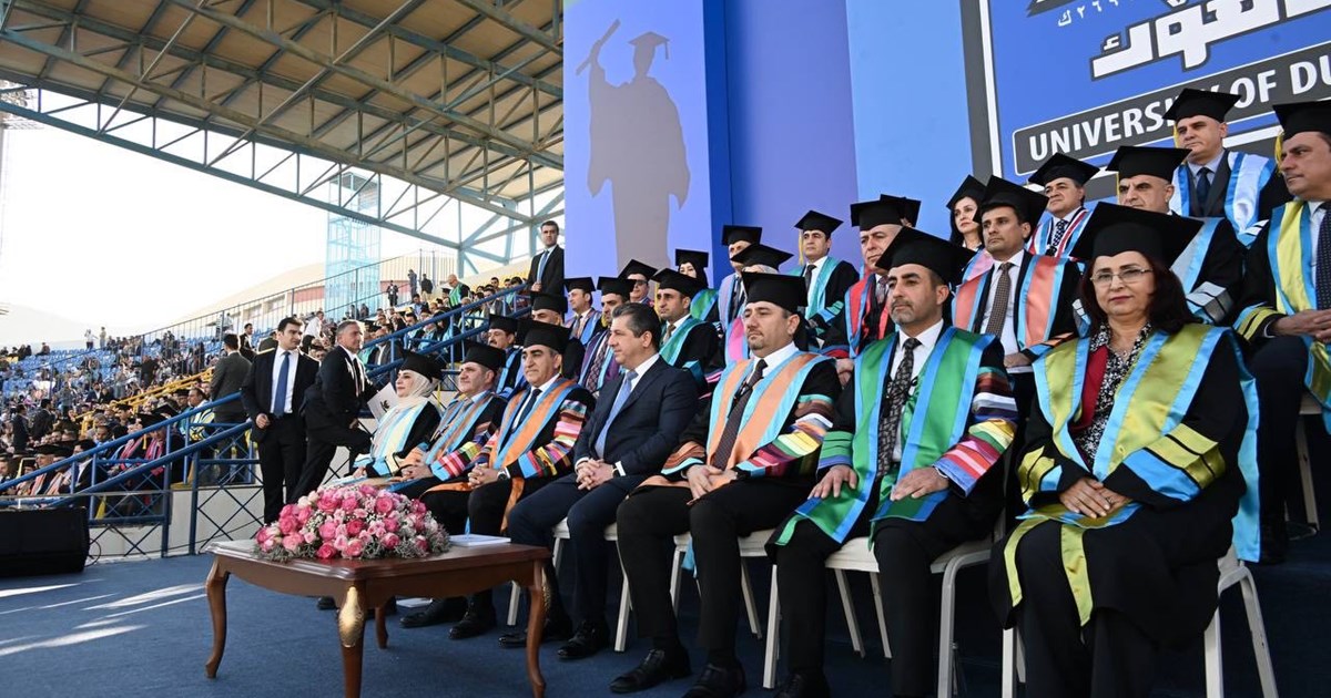 سەرۆکی حکومەت لە گوتارێکدا ئاماژەی بەوە دا کە جێی خۆشحاڵییە ئەمڕۆ زانکۆی دهۆک بووەتە یەکێک لە زانکۆ باشەکانی کوردستان و لە دوای دامەزراندنییەوە لە سەرەتای ڕاپەڕین، بە هەزاران قوتابی لەم زانکۆیە دەرچوونە و ئێستا بوونەتە کادیر و بەڕێوەبەر و بەرپرس کە لە بواری جیادا خزمەت دەکەن.