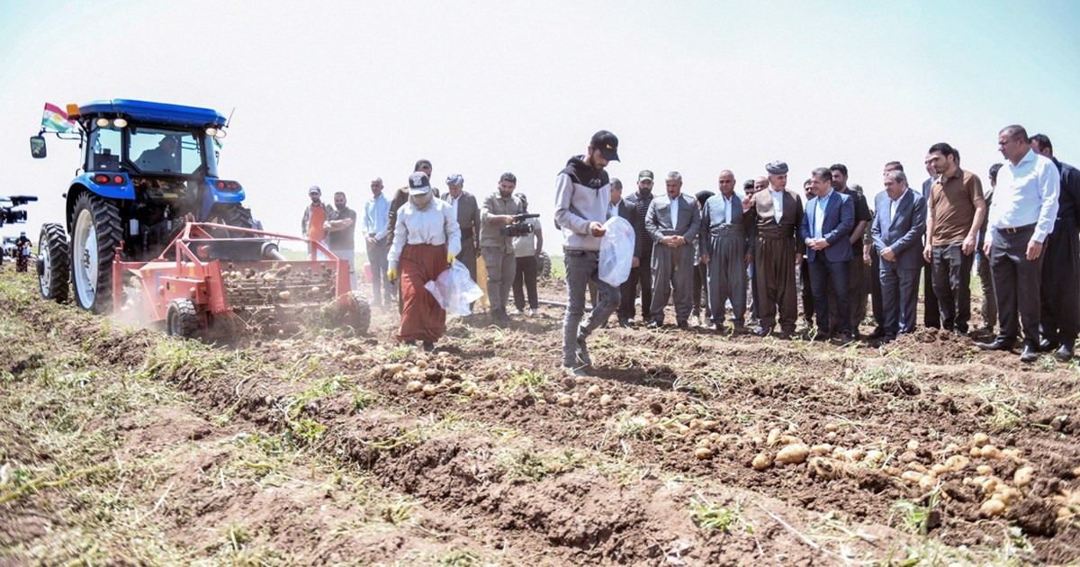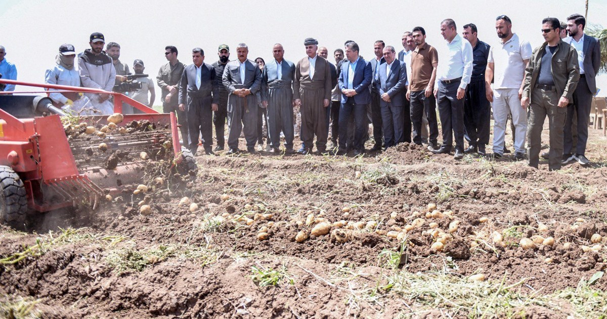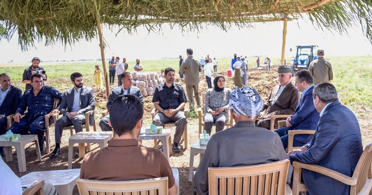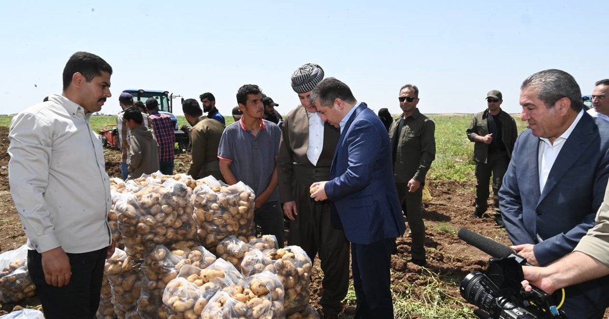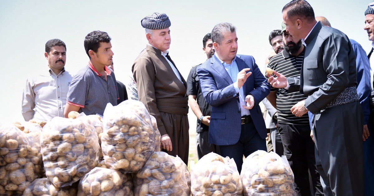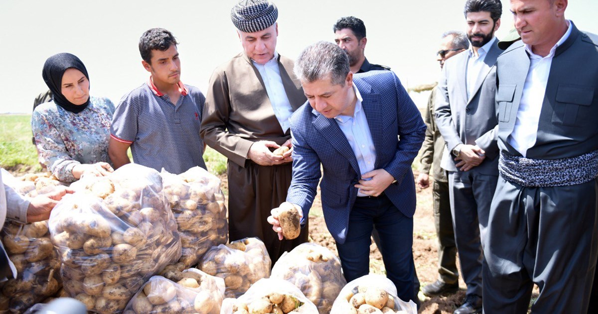 سەرۆکی حکومەت کێڵگەیەکی بەرهەمهێنانی پەتاتە لە بەردەڕەش بەسەر دەکاتەوە و لەگەڵ ژمارەیەک لە جووتیاران کۆدەبێتەوە
